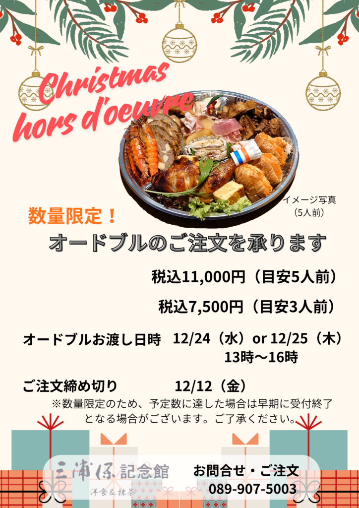 は12/24(火)、12/25(水)の二日間ご提供をさせていただきます